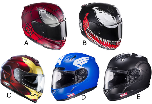 マーベルヒーローのグラフィックをあしらった、マーベル公式のヒーローグラフィックのヘルメットがHJCから発売されています。ベースとなったヘルメットのグレードで機能や価格が異なるのですが、ここではデザイン重視で自分が被ってもいいなというヘルメットを教えてください! (キッズ用の「アベンジャーズ」は除いています)